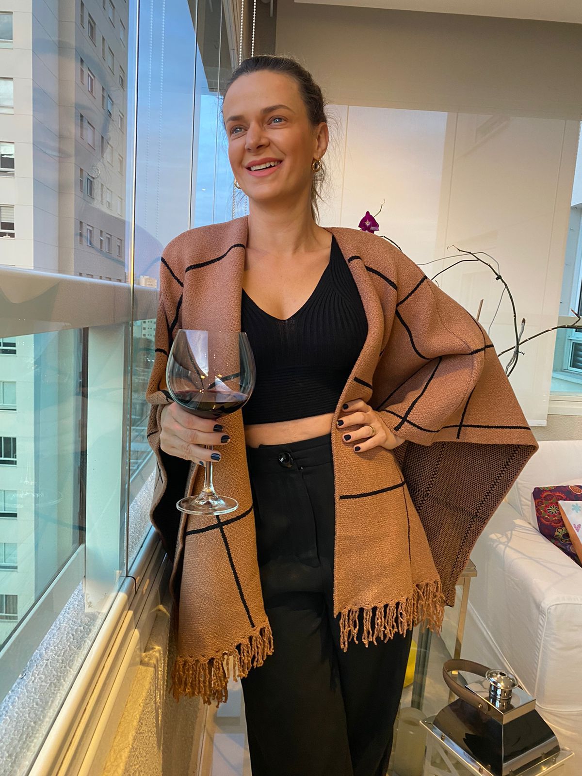 Poncho maravilhoso em tricot mousse na cor caramelo chiquerrimo.